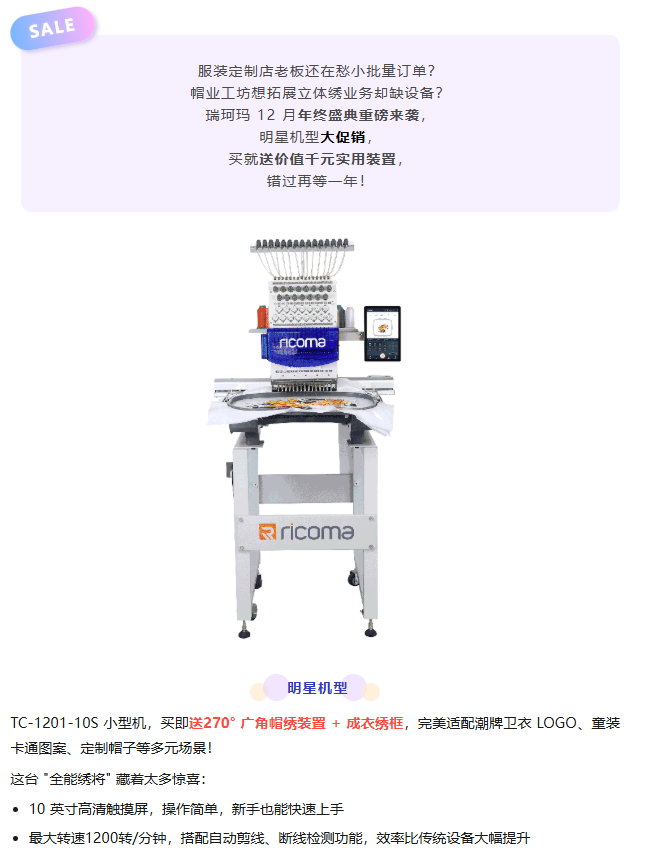 年終沖刺抄底價(jià)!瑞珂瑪繡花機(jī)為企業(yè)效能升級(jí)注入新動(dòng)力